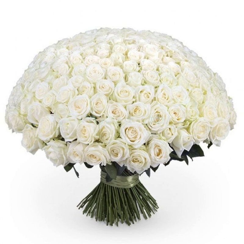Букет состоит из 201 белая роза, прозрачная упаковка, атласная лента.